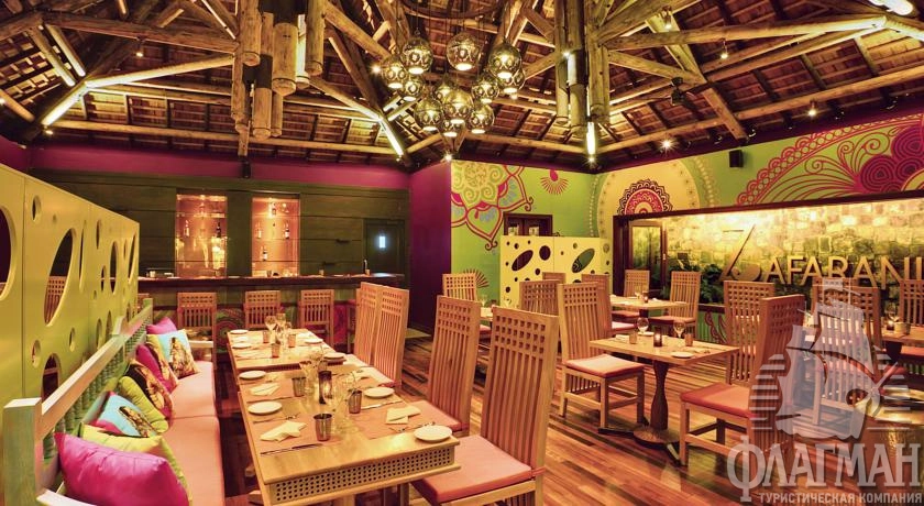 - рестораны: 5 (Le Balafon – главный, международная кухня / Amafrooty – легкие блюда и закуски / Zafarani – блюда кухни северной Индии / Infinity Blue – морепродукты / The Boma – дважды в неделю, ужины “у костра”)