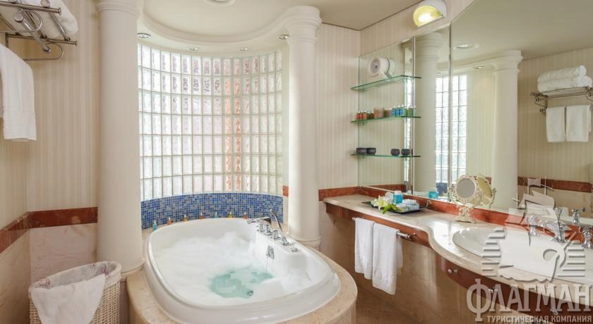 - SPA-центр: тренажерный зал Gladiator с современным оборудованием, открытый бассейн, закрытый бассейн под куполом, открытый бассейн c морской и минеральной водой, бассейн с гидромассажем, каскады водопадов горячей и холодной воды, сухие и влажные сауны, площадка для занятий аэробикой, центры лечебной косметики, грязевые процедуры, массажи, бар с фруктовыми коктейлями, оздоровительные программы по релаксации, антистресс, антицеллюлитные программы