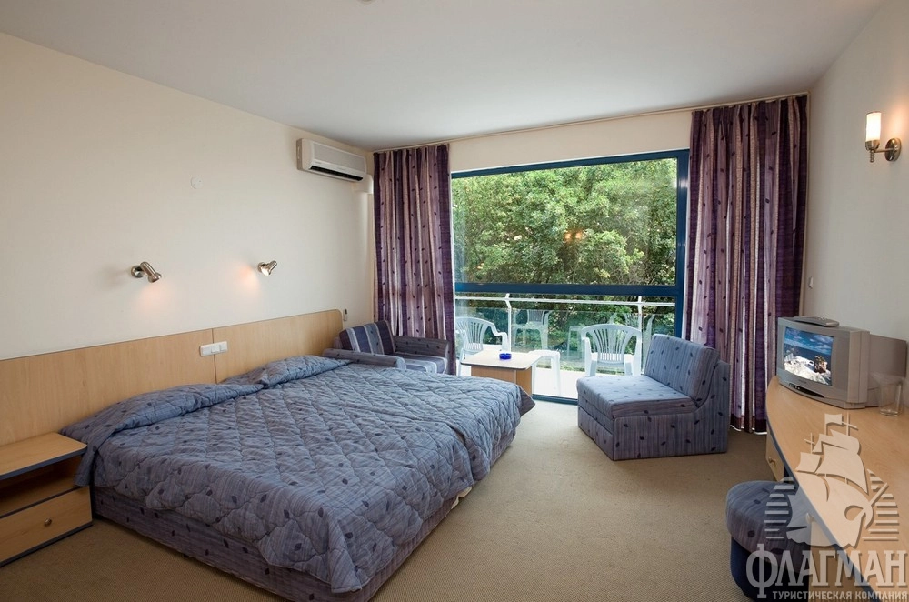 В курортном комплексе Золотые Пески, в 20 км от аэропорта города Варна, в 500 м от центра курорта и в 550 м от пляжа.