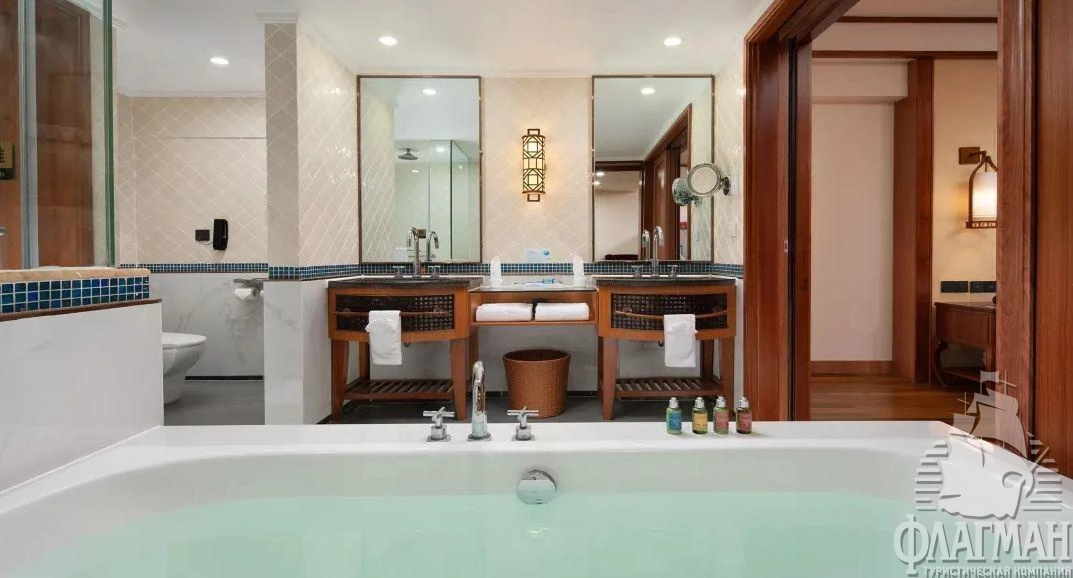 - (area 1)selected deluxe sea view room (на 2-6 этажах, 30-35 кв. м, спальня, кровать King-size или 2 односпальные кровати, ванная комната, балкон, вид на море 30-60 градусов и сад);