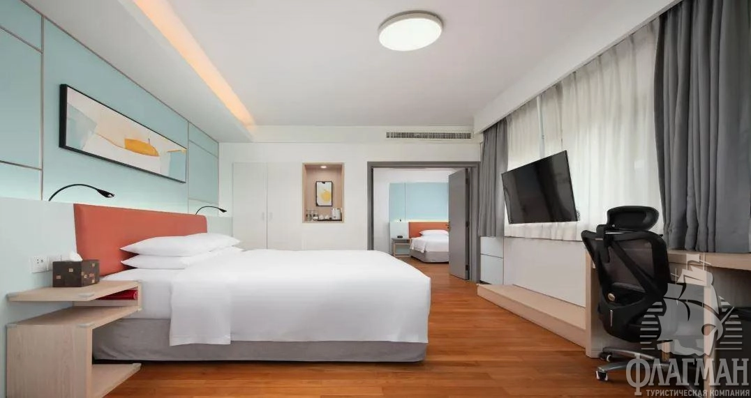 - (area 2)deluxe mountain view room (на 2-8 этажах, 48 кв. м, спальня, кровать King-size или 2 односпальные кровати, ванная комната, балкон, вид на горы);