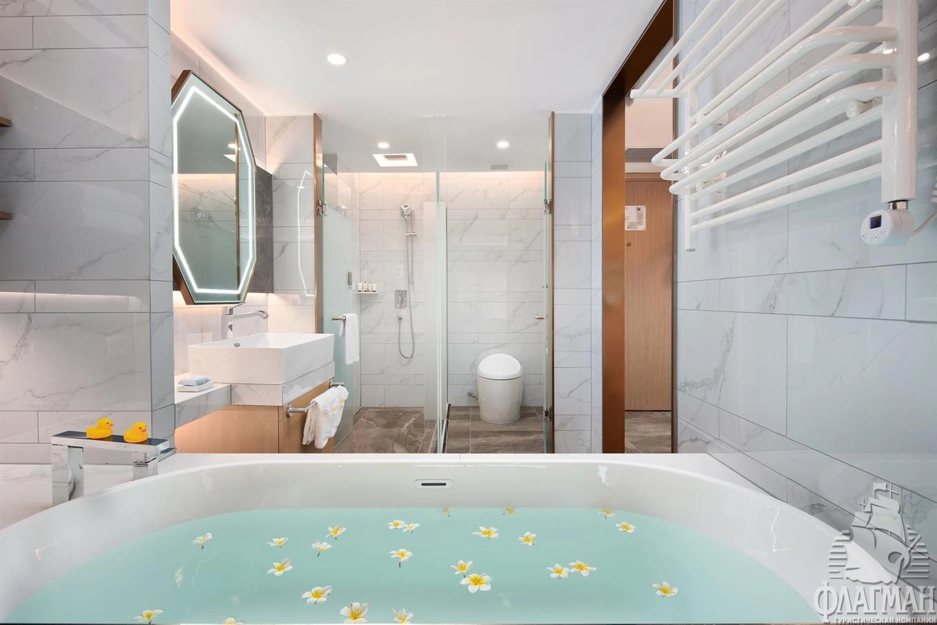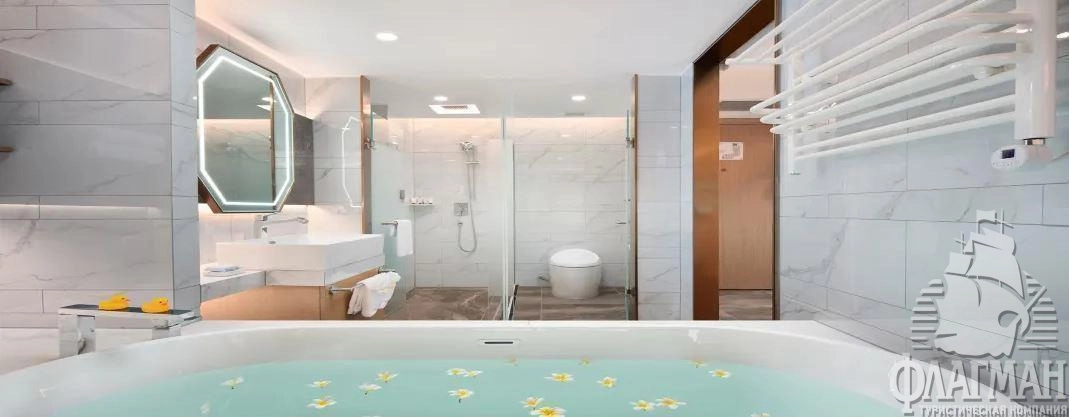 - (area 2)super sea view room (на 1-8 этажах, 48 кв. м, спальня, кровать King-size или 2 односпальные кровати, ванная комната, балкон, вид на море 120-180 градусов и сад)