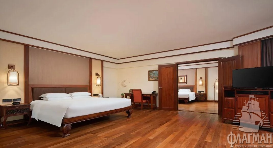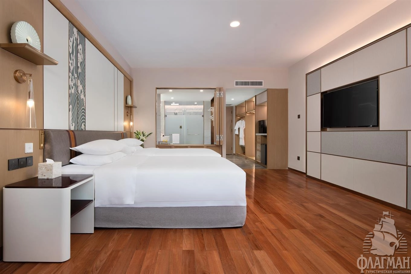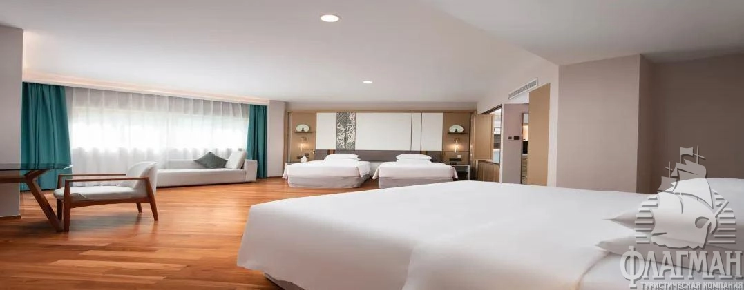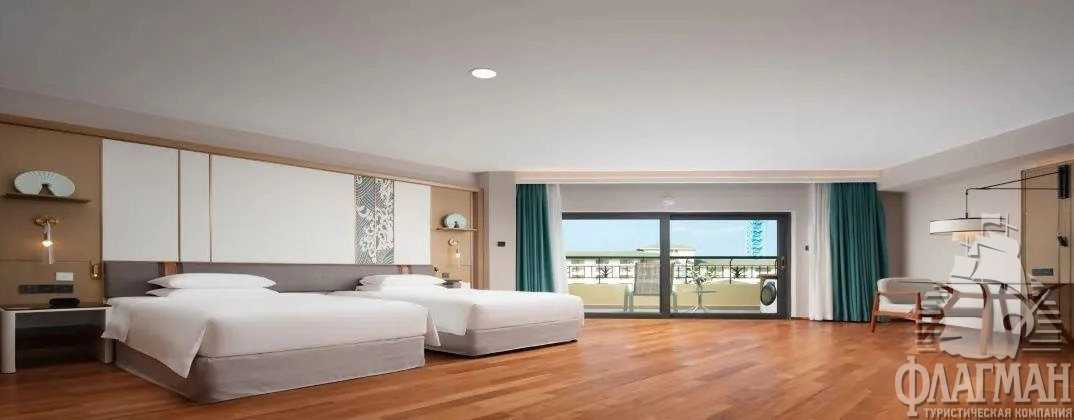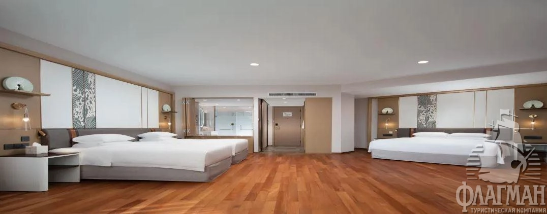 - (area 2)sea view family room (на 2-8 этажах, 73-82 кв. м, спальня, кровать King-size и односпальная кровать, ванная комната, балкон, вид на море 70-120 градусов и сад);