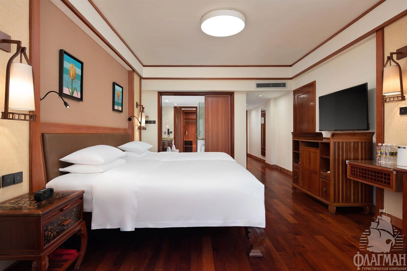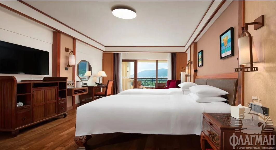 Отель расположен на 1-ой береговой линии, в бухте Ялонг Бэй, в 5 мин ходьбы от торгового центра в Ялунвань, в 28 км от г. Санья, в 30 км от международного аэропорта Феникс, в 100 м от моря.