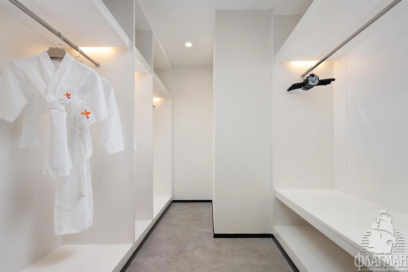 - (area 1) sea view family room for 4 people (на 2-4 этажах, 55 кв. м, спальня, кровать King-size или 2 односпальные кровати, ванная комната, вид на море 90-180 градусов и сад);