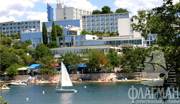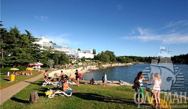 В 200 м от пляжа, в 400 м от курортной зоны “Зеленая Лагуна”, в 5 км от Пореча и в 60 км до аэропорта г.Пула. Рядом с отелем имеется остановка автобуса с удобным транспортным сообщением до центра города (автобус - каждые 60 минут, туристический паровозик - каждые 30 минут, кораблик - каждые 60 минут).