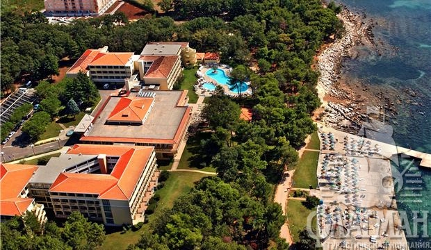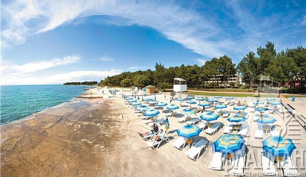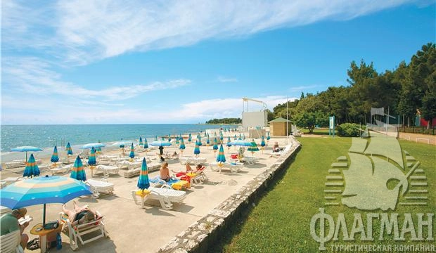 В 50 м от берега моря, в парковой зоне, в туристическом центре Каторо, в 2,5 км от Умага, куда постоянно курсирует туристический мини-поезд.