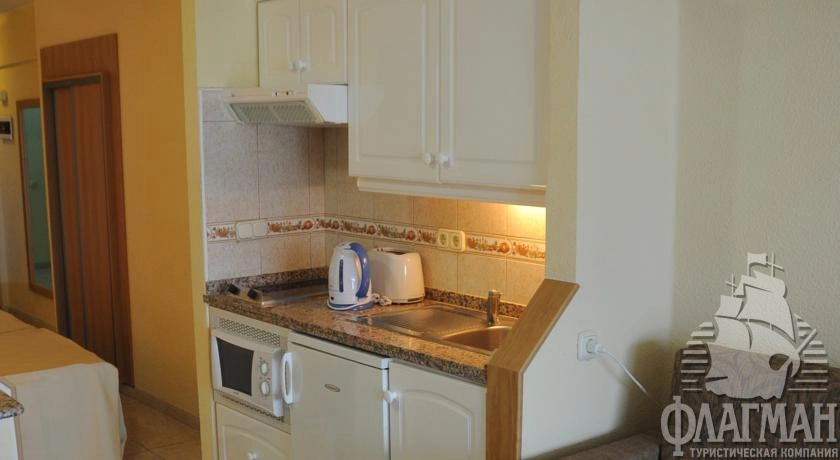 - мини-кухня (микроволновая печь, чайник, тостер, посуда)