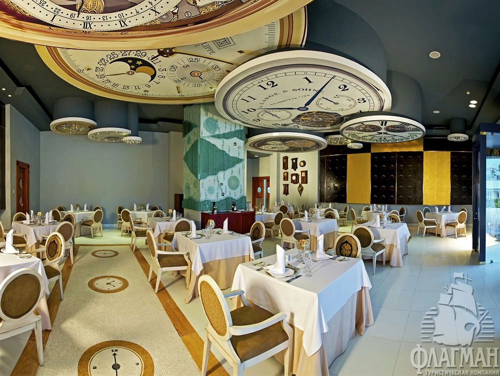 - рестораны a la carte: 4 (итальянский Le Tentazione, японский Hashira, гурме Le Tourbillon, морской El Galeon, бесплатно, предварительное бронирование обязательно, дресс-код)