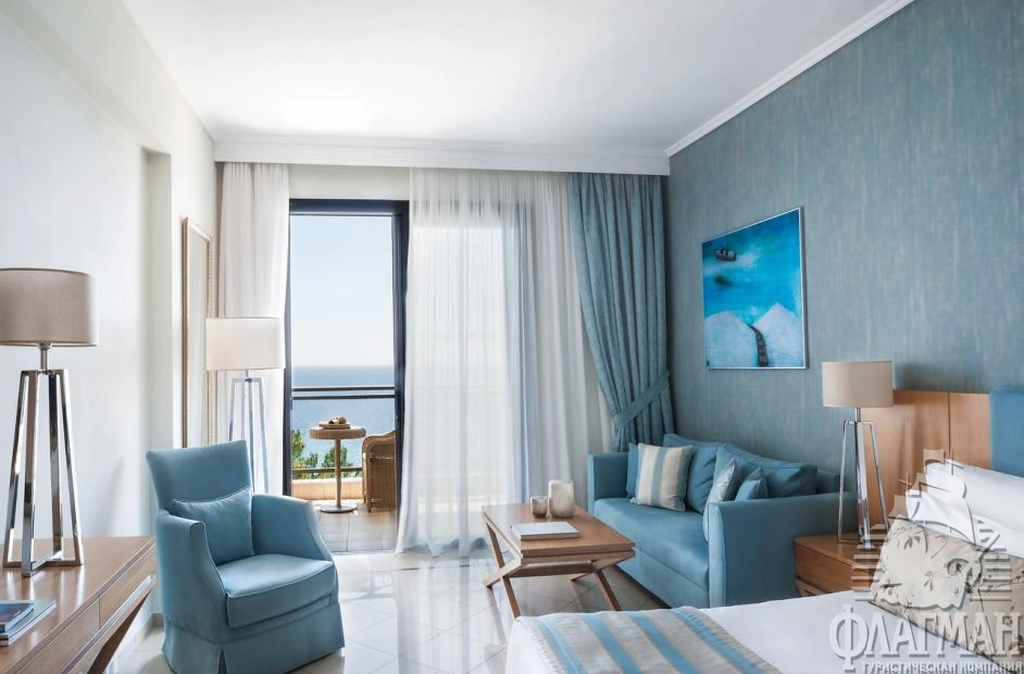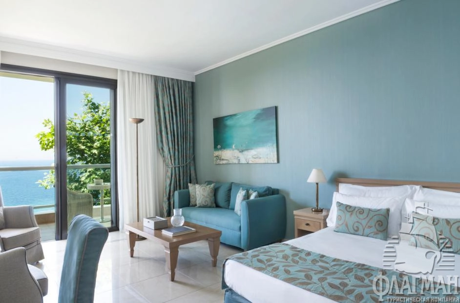 - panorama junior suite SV (вид на море, панорамный вид на море, спальня с гостиной зоной, осн. кровать – две односпальные или двуспальная, доп. – односпальная и раскладное кресло, макс. 3+1 чел., 35 м2);