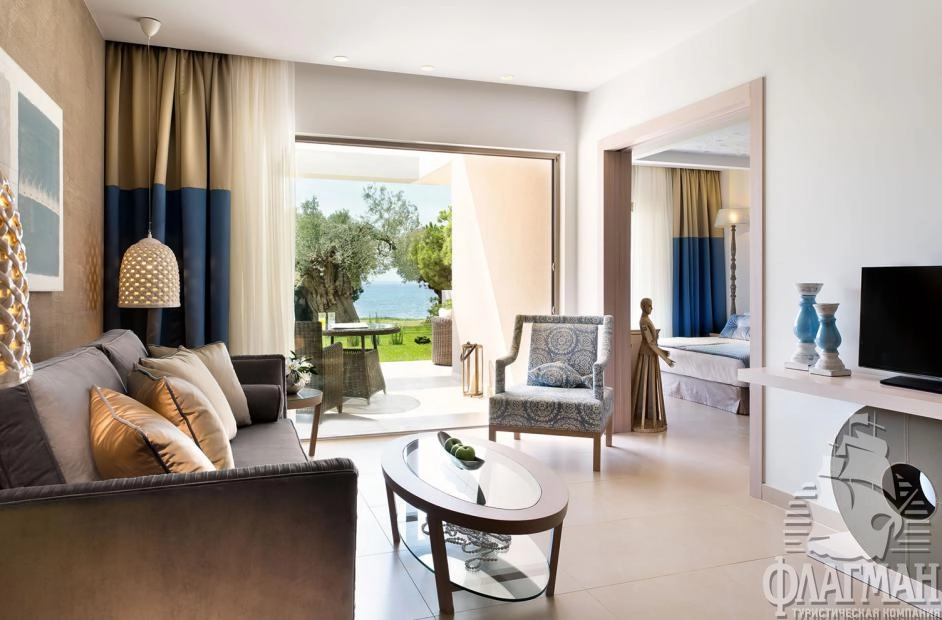 - deluxe one-bedroom family suite SV (вид на море, спальня с отдельной гостиной, осн. кровать – двуспальная, доп. – софа и раскладное кресло, макс. 2+2 чел., 55 м2);