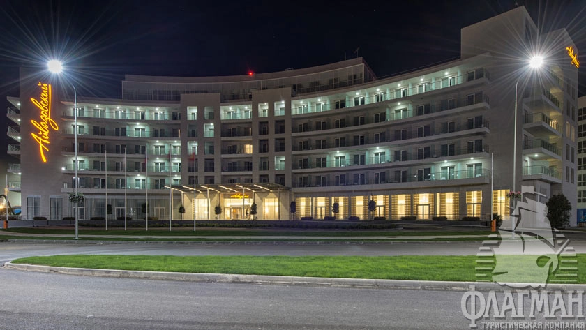 Гостиница состоит из основного корпуса и 11-ти 7-ми этажных зданий. Включает апартаменты, номера, доступные для людей с ограниченными возможностями - увеличенная площадь коридоров, дверных проемов, система отсутствия препятствий на пути, лифты, парапеты, специализироанная сантехника, выключатели экстренного вызова. Все корпуса выходят к Променаду, марине; благоустроенная, озелененная внутренняя территория с взрослым и детским бассейном.