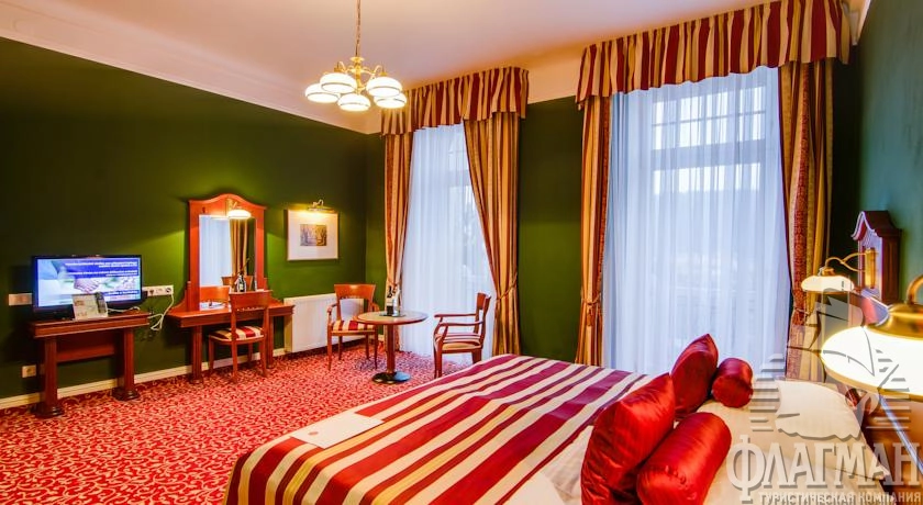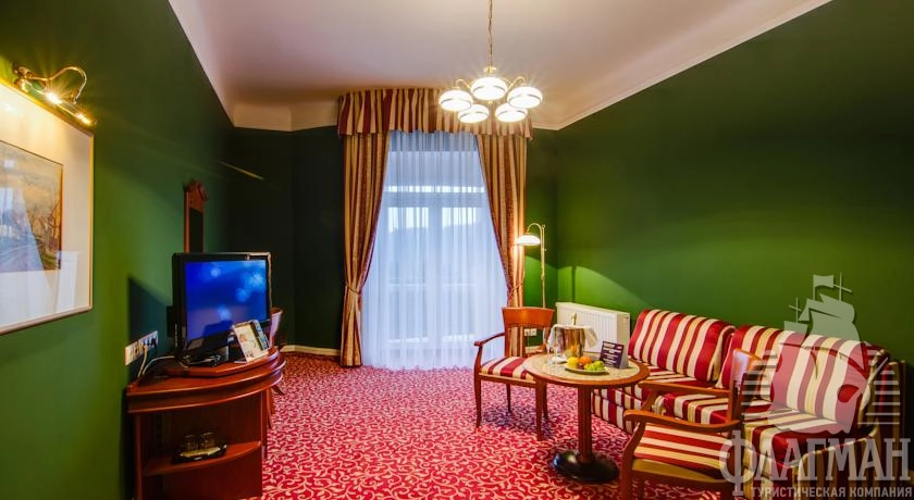 - 12 номеров Suite Standard (47 кв. м, 2 комнаты, биде, 2 умывальника, бутылка минеральной воды и бутылка красного вина в подарок, питание в ресторане "Париж")