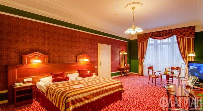 - 3 номера Suite Superior (58 кв. м, 2 комнаты, балкон в некоторых номерах, 2 туалета, 2 умывальника, биде, вино и минеральная вода по приезду, питание в ресторане "Париж")