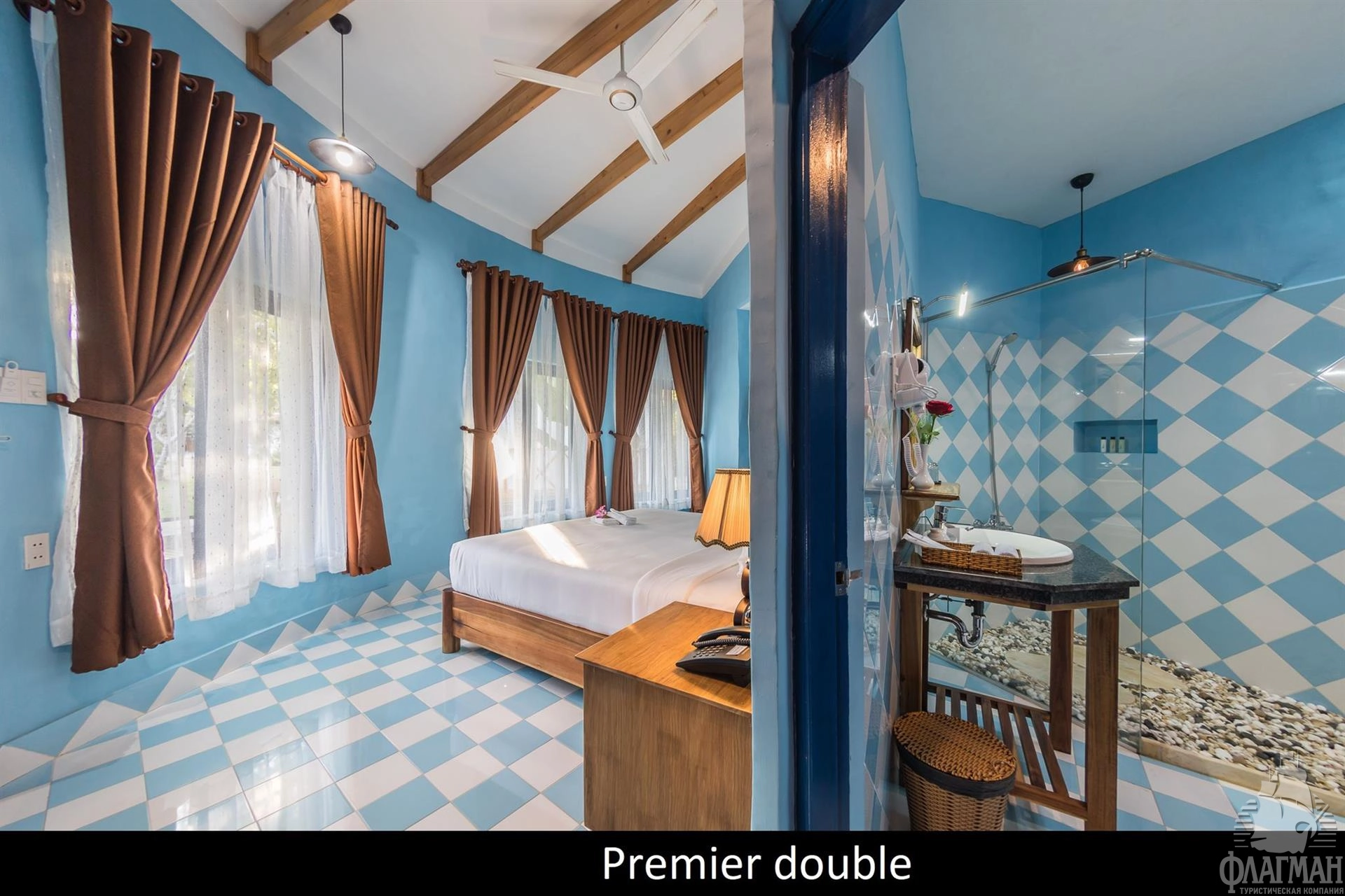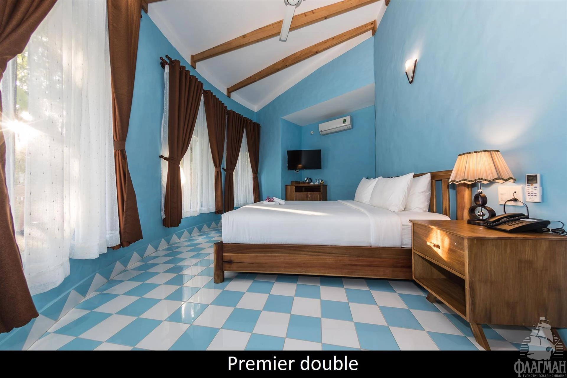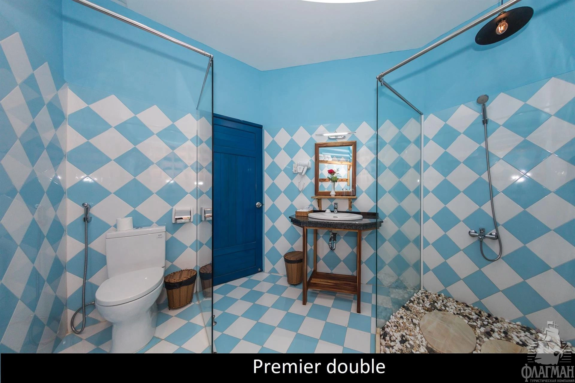 - Premier double (38 кв.м, макс. 3 взрослых + ребёнок) - спальня (dbl bed 2x2 м), ванная комната, балкон с видом на сад