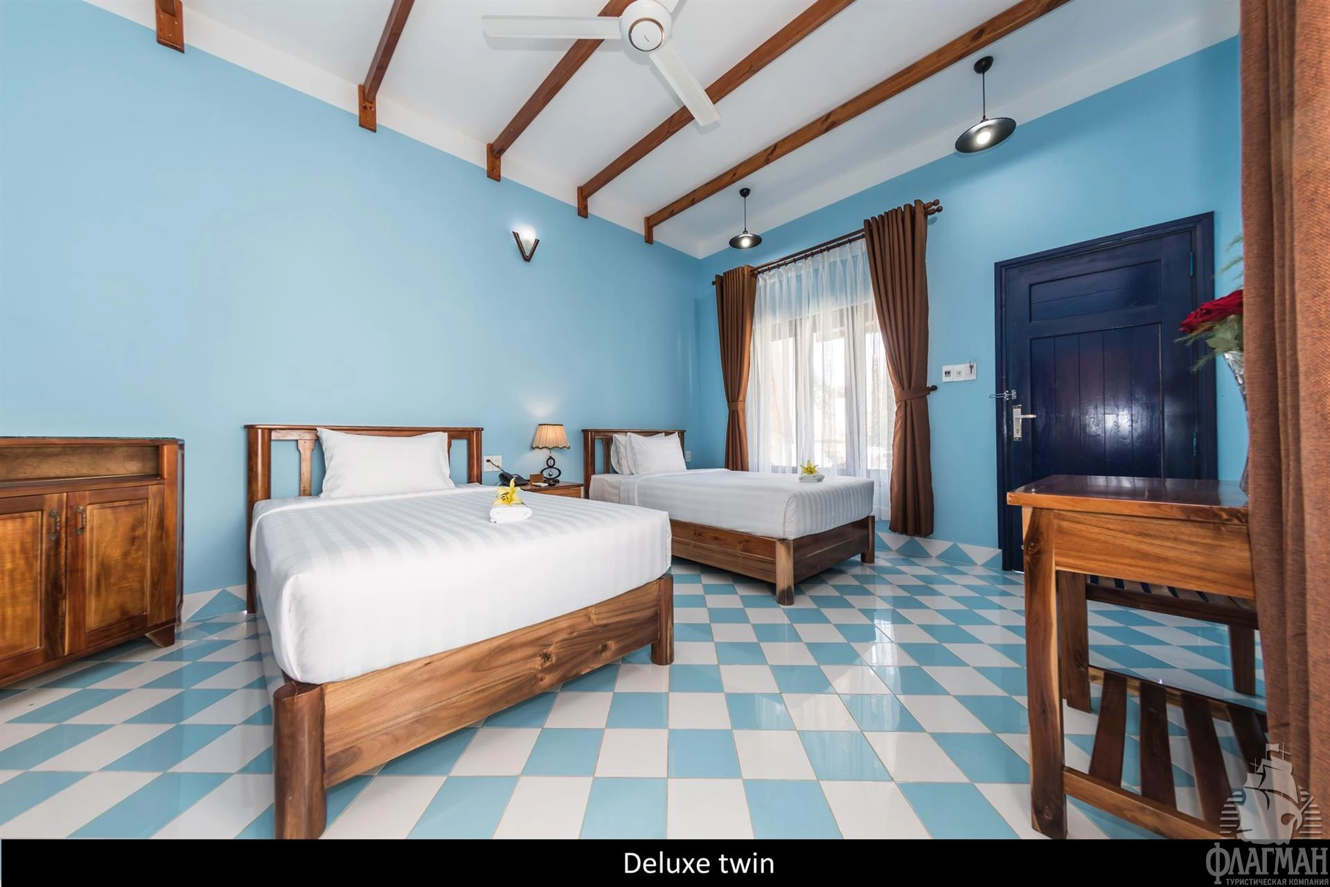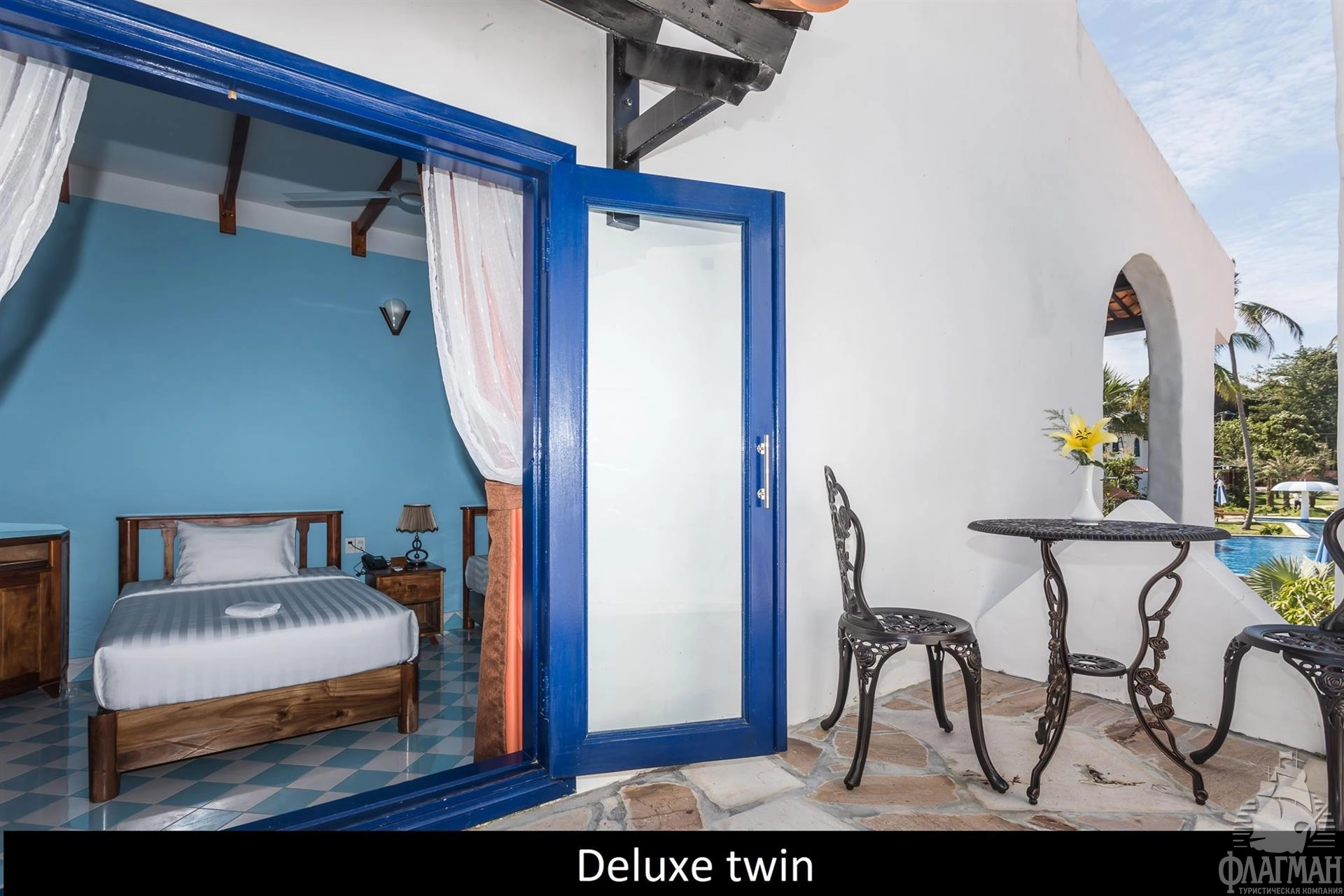 - Deluxe twin (32 кв.м., макс. 2 взрослых + ребёнок) - спальня (twin beds 1,2x2 м), ванная комната, балкон с видом на сад