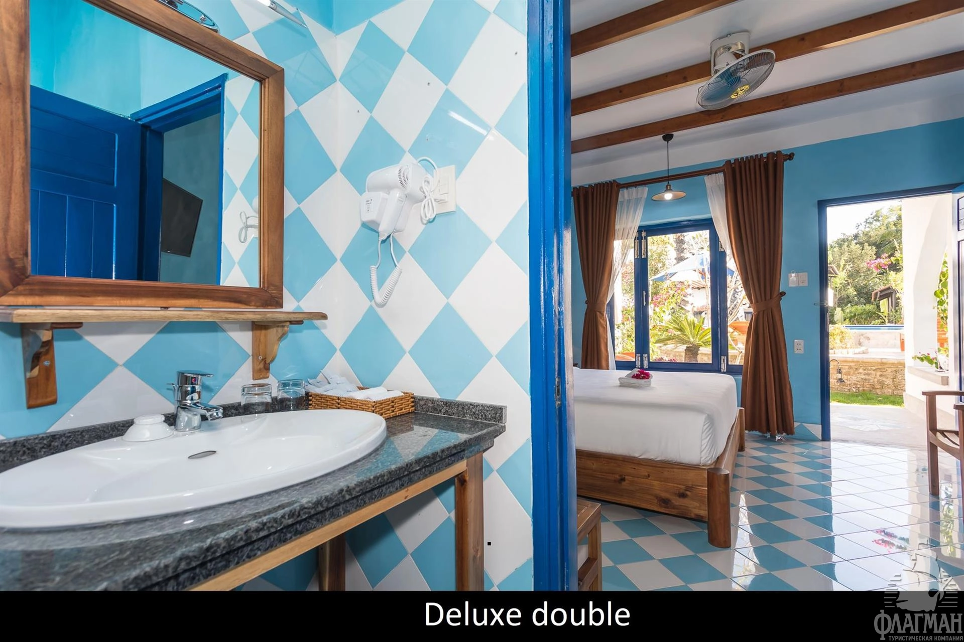 - Deluxe double (32 кв.м., макс. 2 взрослых + ребёнок) - спальня (dbl bed 1,6x2 м), ванная комната, балкон с видом на сад