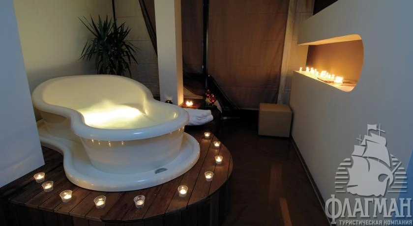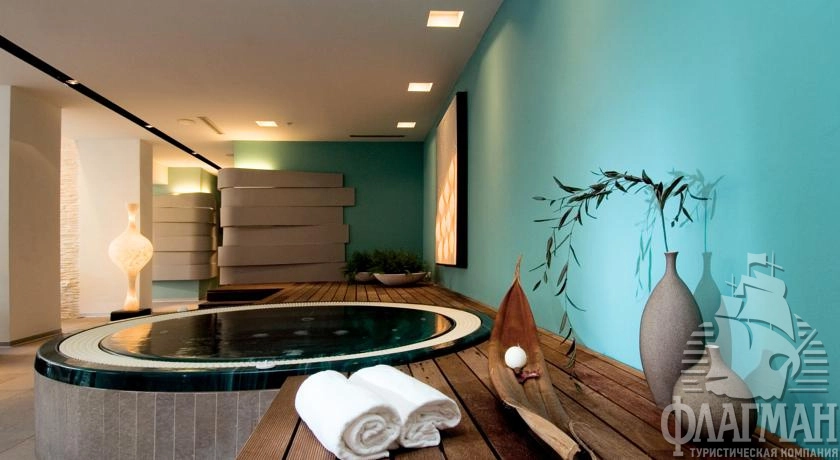 - Wellness-центр (крытый комплекс 1350 кв.м и средиземноморский сад – 250 кв.м: крытый бассейн, крытый бассейн с гидромассажем, массажные кабинеты, солярий, салон красоты, финская сауна, биосауна, солевая сауна, турецкая сауна)