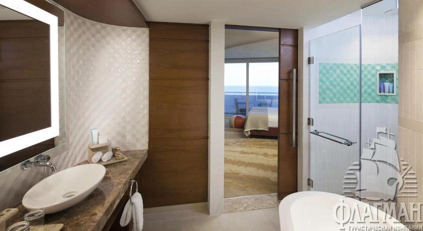 - One Bedroom Ocean Suite (1 спальня, 1 гостиная, 1 ванная комната, обеденная зона на террасе, межкомнатные двери, Executive Concept, 128 м2, макс. 2+2 чел.),