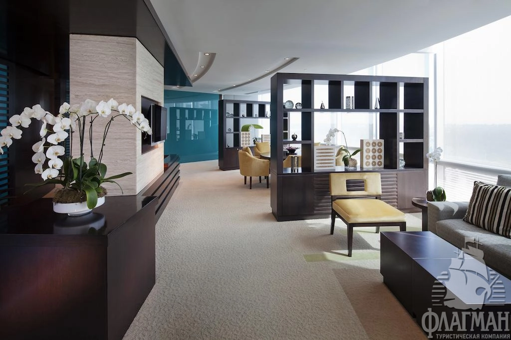 - Club Suite (87 м2, 10–47 этажи, спальня, гостиная, обеденная зона, гостевой туалет, панорамные окна, ноутбук, принтер, факс и сканер, клубные привилегии, макс. 3 или 2+2 чел., есть номера connect с 2 стандартными номерами).