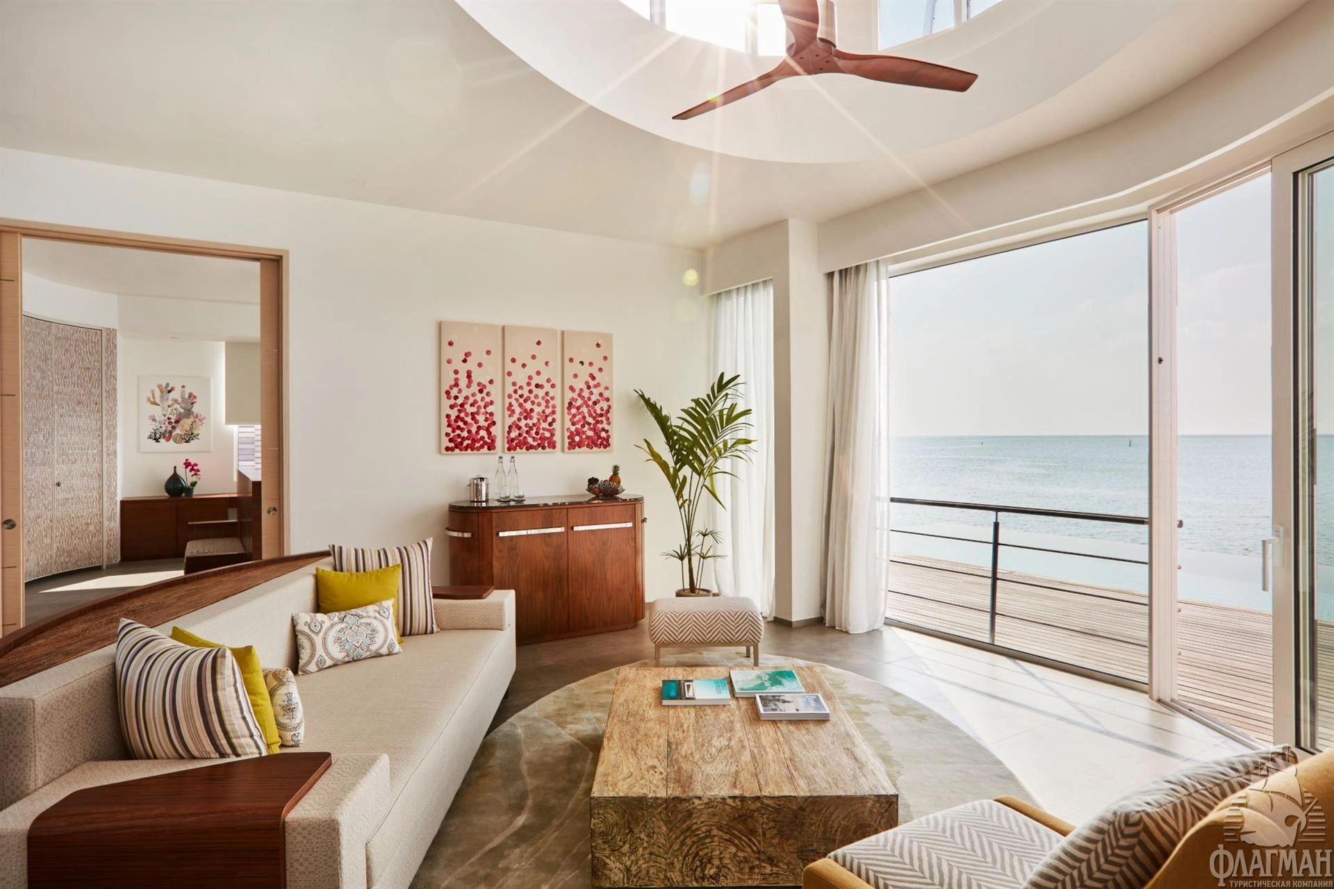 Трансфер: 40...50 мин. на скоростном катере (круглосуточно) или 25 мин. на гидросамолете (06:00-16:00).