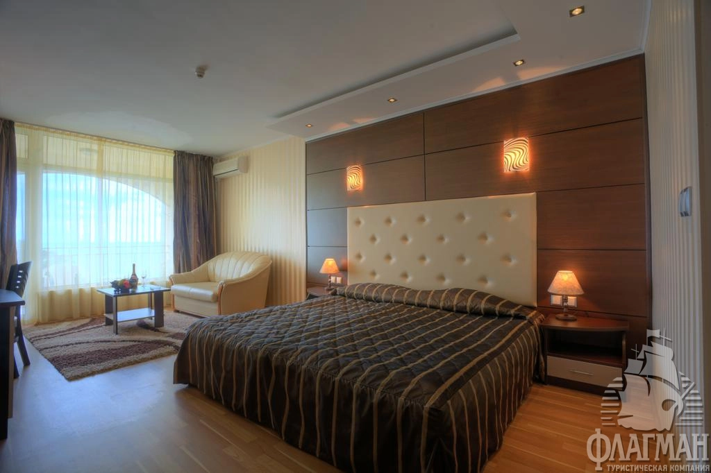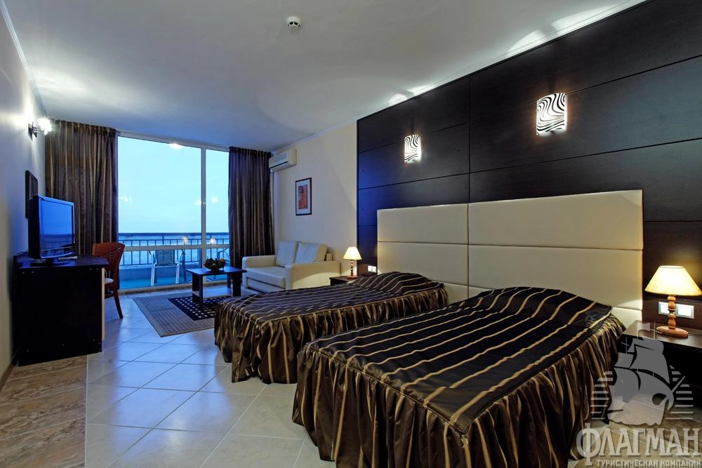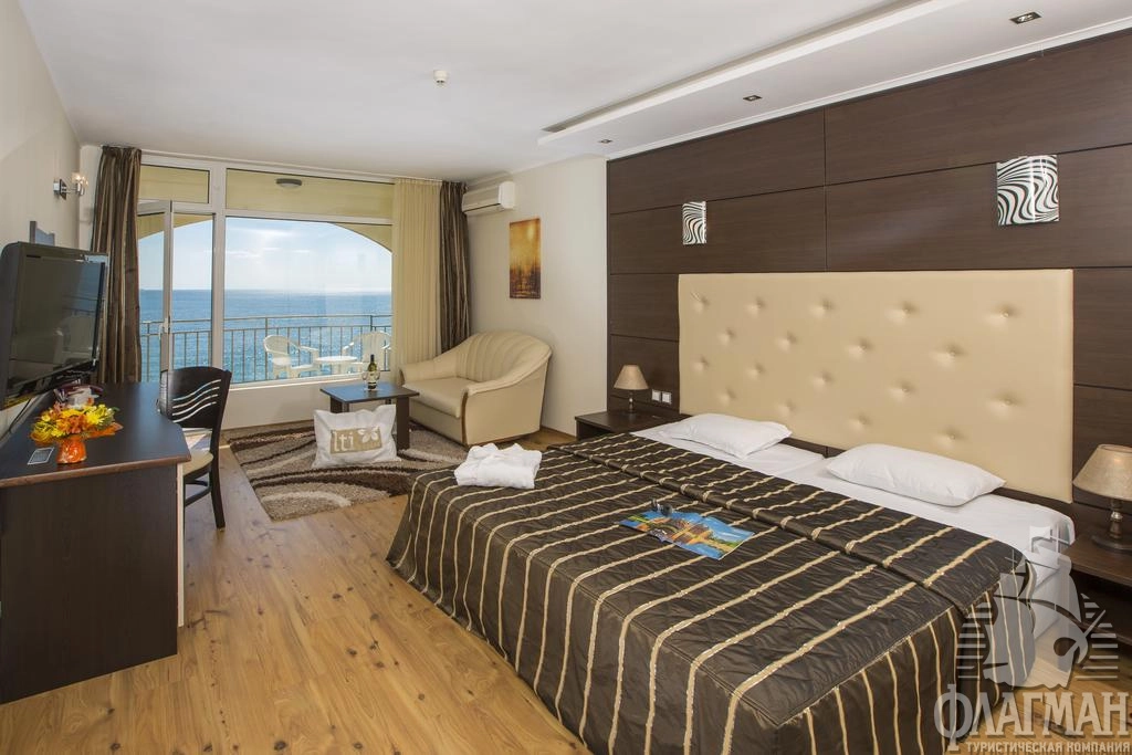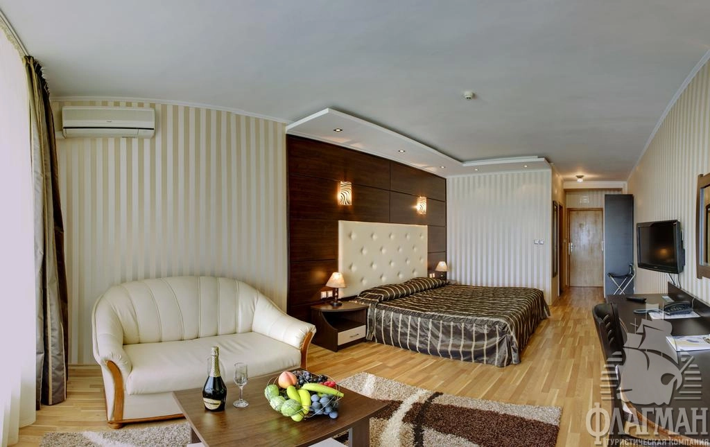 Уютный отель Калиакра Палас 4* находится в 100 м от центра курорта и в 30 м от пляжа. Для гостей проводятся развлекательные мероприятия – танцы, фольклорные вечера, дискотеки и конкурсы под открытым небом. В гостинице внимательный персонал, хорошее питание и развитая инфраструктура для детского отдыха. Рекомендуем для комфортного отдыха с детьми.
