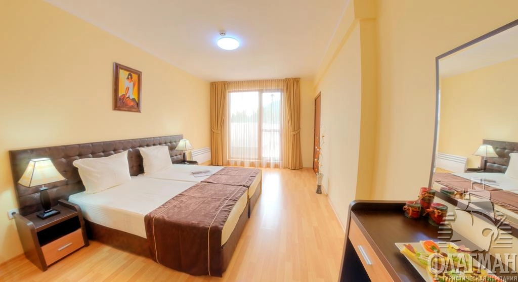 - studio (около 35 кв.м; однокомнатные номера без балкона, расположенные преимущественно на 1-ом и 3-м этажах апартотеля; макс. 2 чел.)