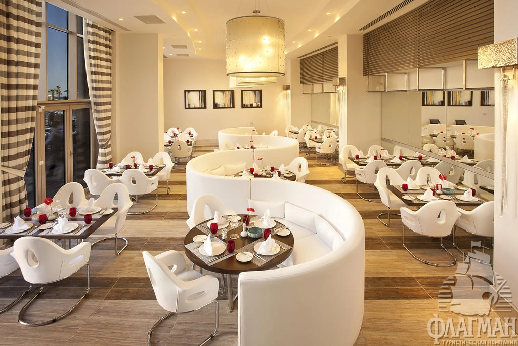 - рестораны a la carte: 5 (рыбный, стейк-хаус – бесплатно; итальянский, азиатский, ливанский – платно, по предварительной записи)