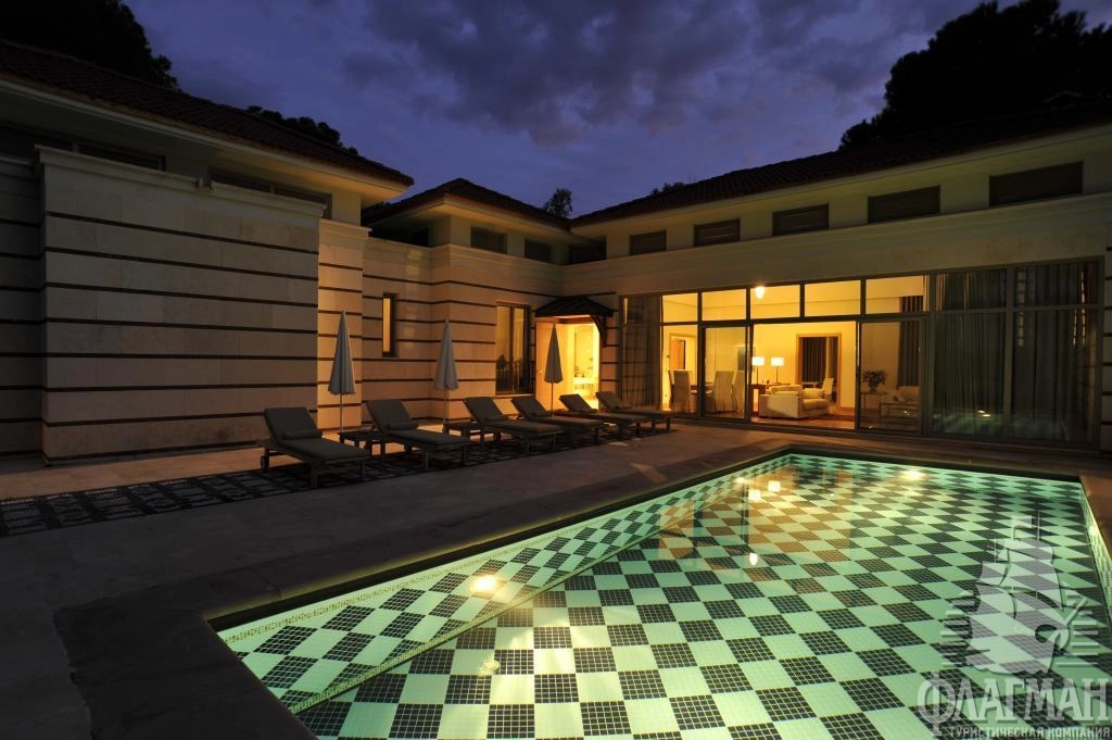 2 четырехкомнатных Sultan & Pasha Villa (собственный бассейн и сад, гостиная с камином, кухня, 3 спальни с дверью, 3 ванные: одна из них с джакузи, большая терраса, макс. 6 чел., 200 м2, VIP-сервис).