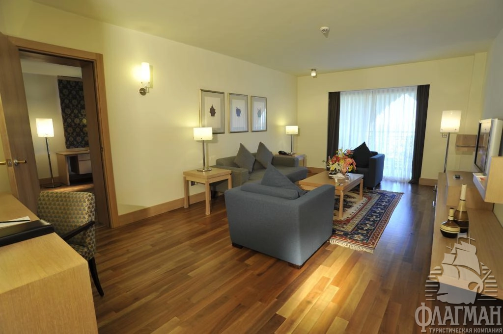 4 двухкомнатных one bedroom suite (гостиная, спальня с дверью, 2 ТВ, 2 балкона, макс. 3 чел., 76 м2);