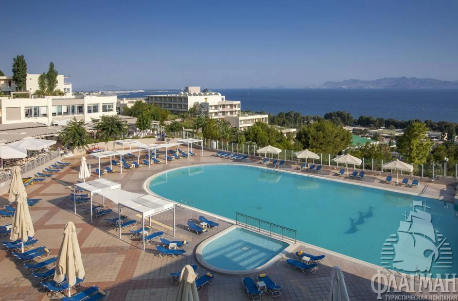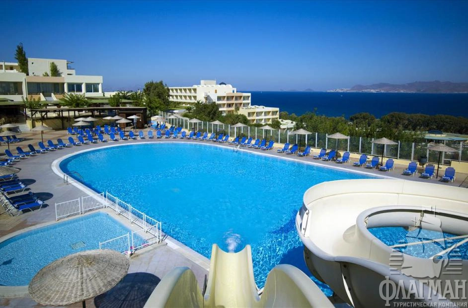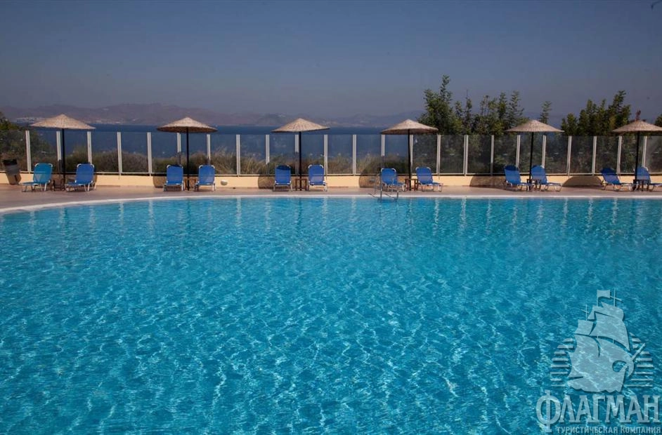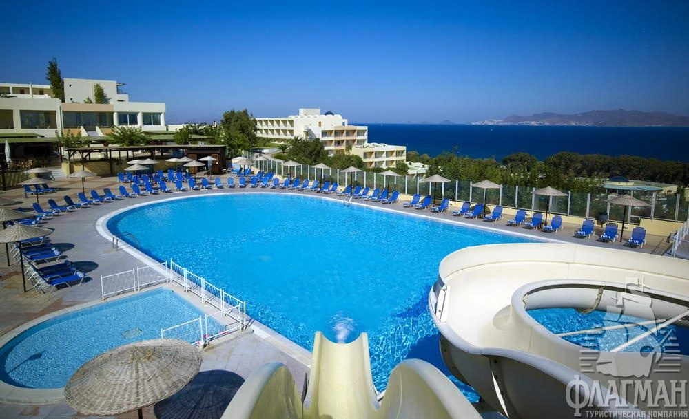 Отель KIPRIOTIS PANORAMA AQUALAND 4* расположен в 25 км от аэропорта о. Кос, 3 км от г. Кос, в п. Псалиди, на возвышенности.