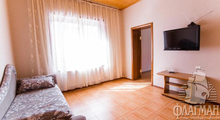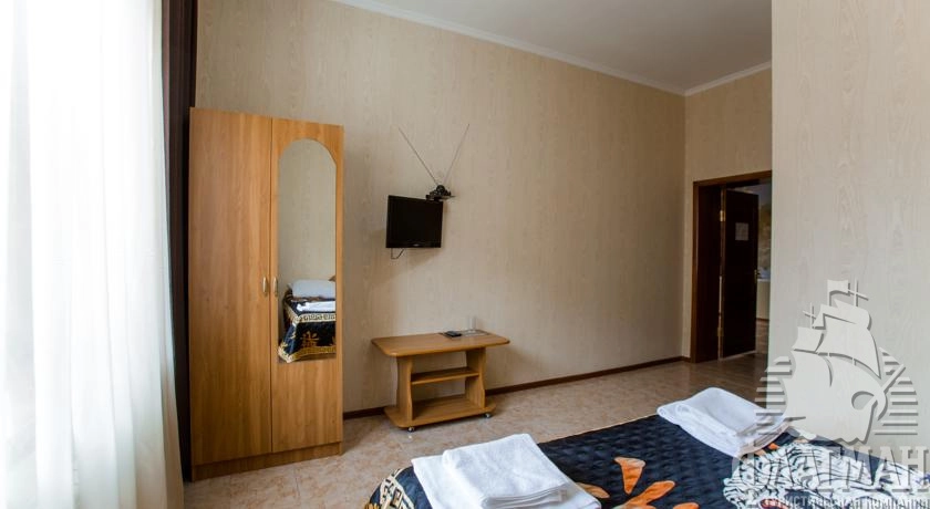 - 3-местный Семейный. В номере: две смежные комнаты,ванная комната. В первой комнате: двухспальная кровать,прикроватные тумбы,шкаф. Во второй комнате: односпальная кровать/диван, телевизор, шкаф, журнальный столик. В ванной комнате: ванная, раковина, унитаз, полотенца, средства личной гигиены. В каждом номере возможно доп. место.