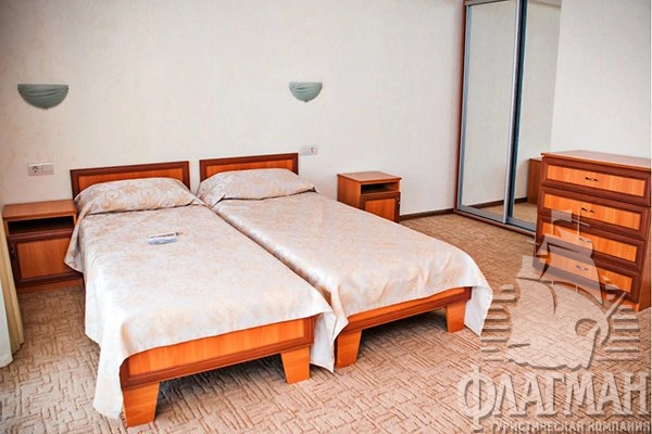 - ЛЮКС 3-МЕСТНЫЙ - Балкон. Мебель: двуспальная кровать, диван, журнальный столик, прикроватные тумбочки. Оборудование: кондиционер, микроволновая печь, холодильник, набор посуды, сейф, телевизор, чайный набор посуды, электрочайник. Санузел с душем, фен. Сервис: Wi-Fi, смена полотенец: 1 раз в 3 дня, смена постельного белья: 1 раз в 3 дня, уборка номера: 1 раз в 3 дня. Дополнительное место - еврораскладушка.