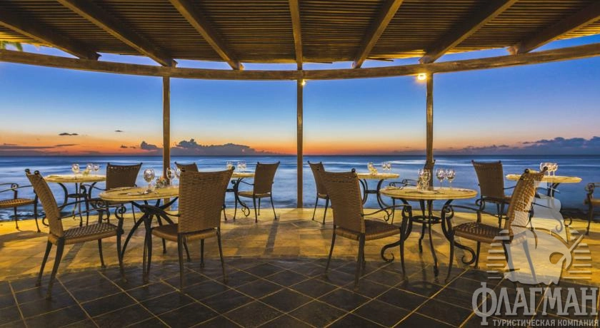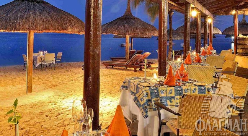 - 4 ресторана (180 Degrees – главный, шведский стол, международная кухня / Shells – фьюжн маврикийской и международной кухонь, морепродукты, гриль, меню a la carte / Cumin – индийская кухня, меню a la carte / La Faya – средиземноморские блюда и местная кухня в современном исполнении, меню a la carte, во время завтраков открыт только для гостей категорий Nirvana и Suite)