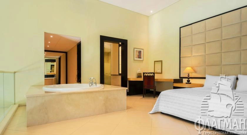 - Deluxe Room (50 м², макс. 3 или 2+2+1 infant). Уютные стильные номера, расположенные в главном здании отеля. Спальня с кроватью king size или двумя кроватями twin, небольшая зона отдыха, ванная комната с ванной и душем, балкон или терраса с видом на сад, выход к пляжу.