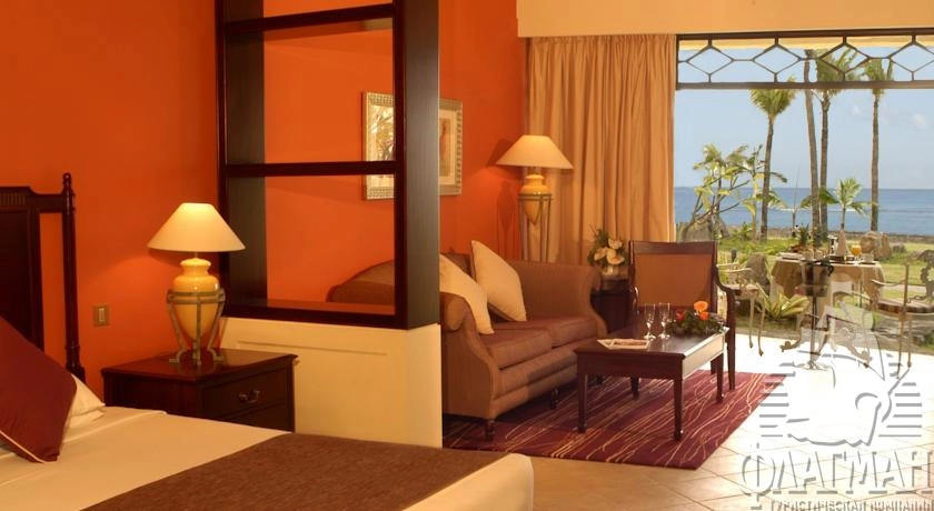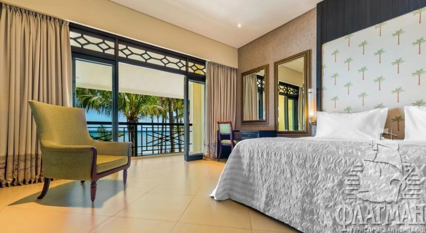 - Deluxe Garden Ocean View (50 м², макс. макс. 3 или 2+2+1 infant). Комфортабельные номера, расположенные на первом этажа главного здания в шаговой доступности к пляжу. Просторные элегантно оформленные номера. Спальня с кроватью king size или двумя кроватями twin, небольшая зона отдыха, ванная комната с ванной и душем. Терраса, выходящая в сад, ведущий к пляжу.