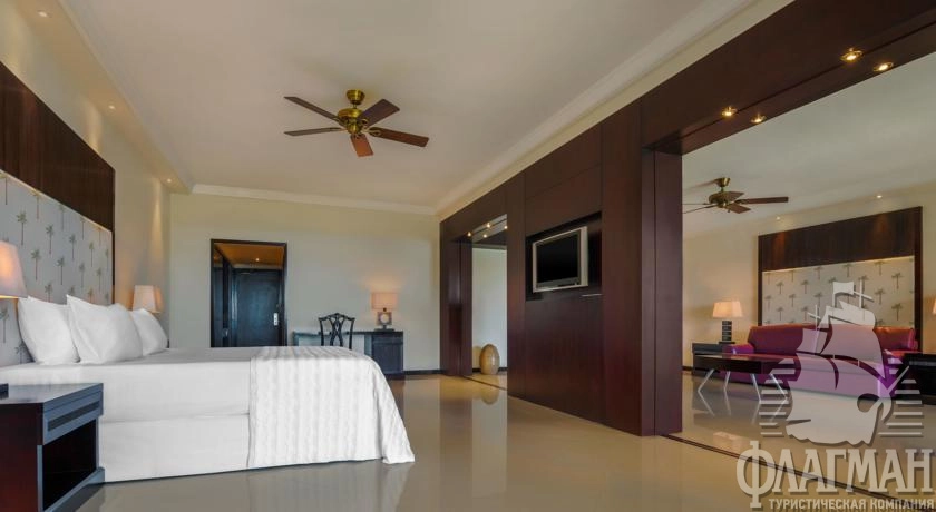 - Royal Suite (150 м², макс. 3 чел.). Элегантные просторные двухуровневые номера с девятиметровыми потолками. Спальня с кроватью king size и джакузи, отдельная обеденная и гостиная зоны, большая терраса с видом на океан. Ванная комната с душем и ванной. Гости данной категории имеют возможность пользоваться эксклюзивными услугами зоны Nirvana Area и бассейном, предназначенном только для взрослых, там же.