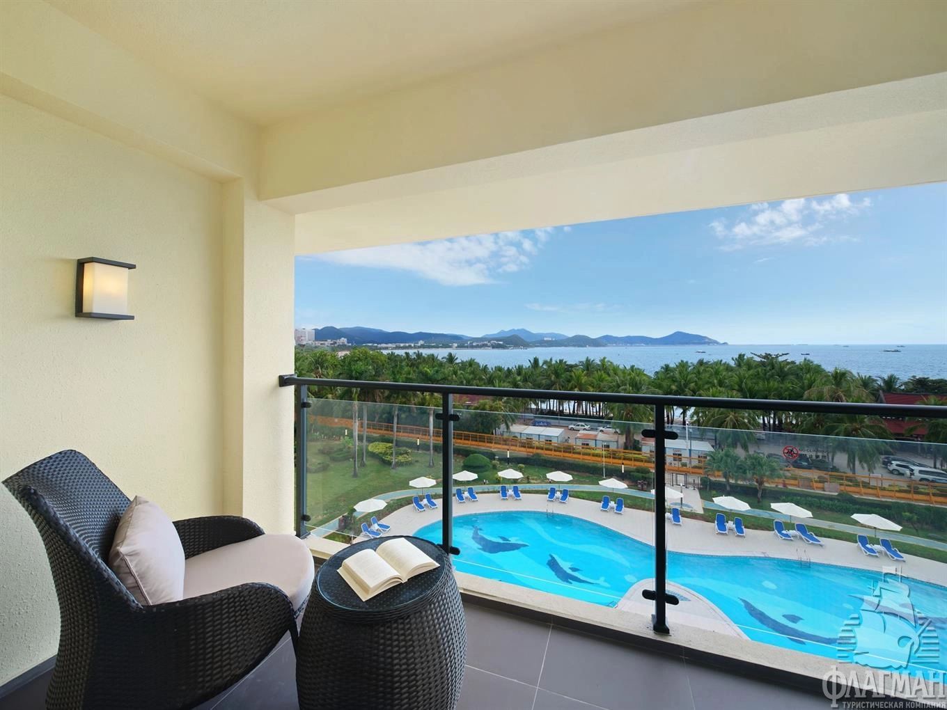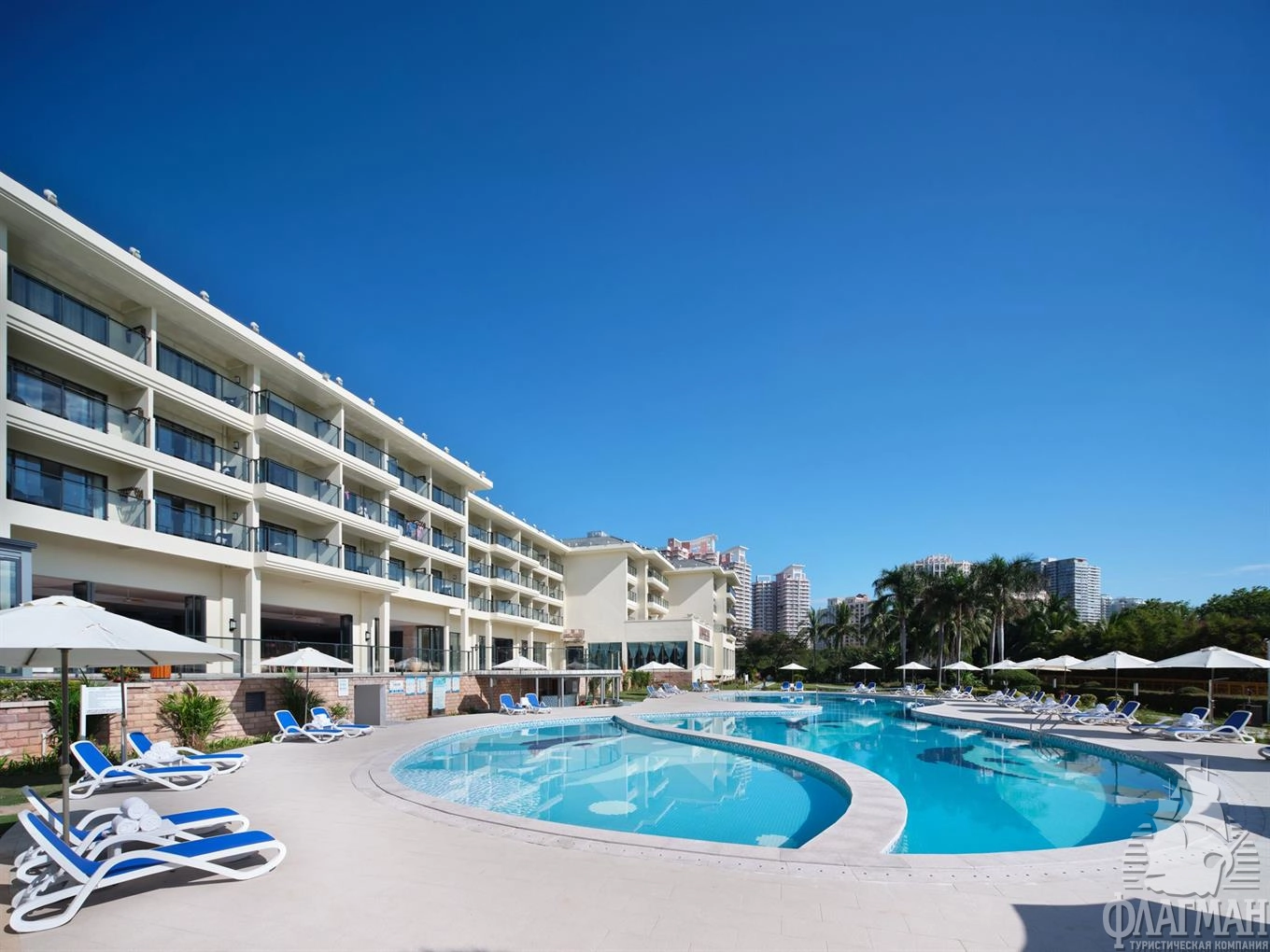 Отель расположен на первой береговой линии бухты Дадунхай, в 3 км от центра г. Санья, в 14 км от международного аэропорта Феникс.