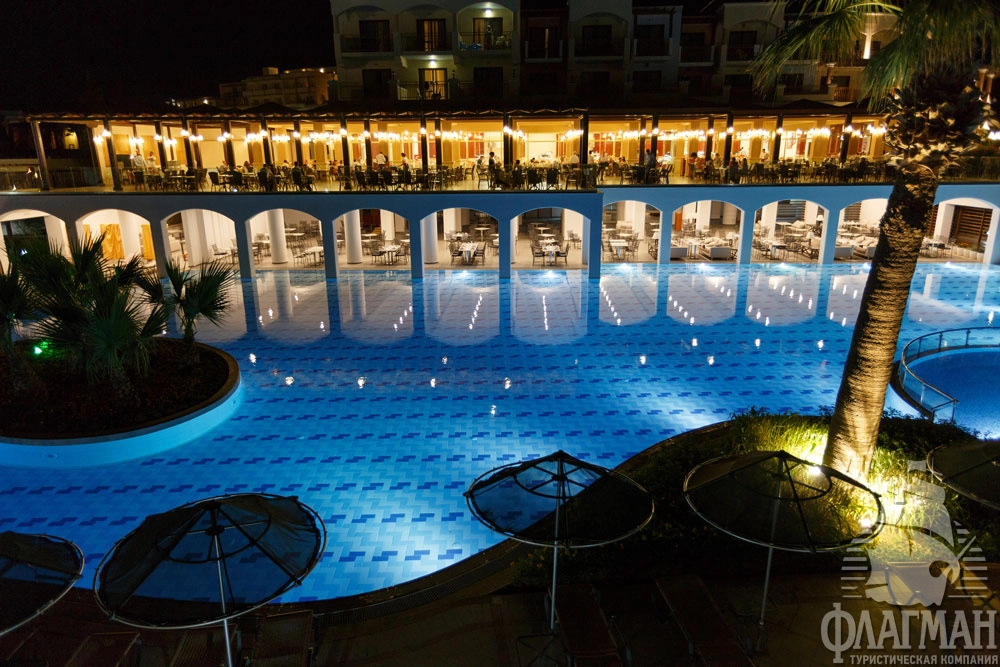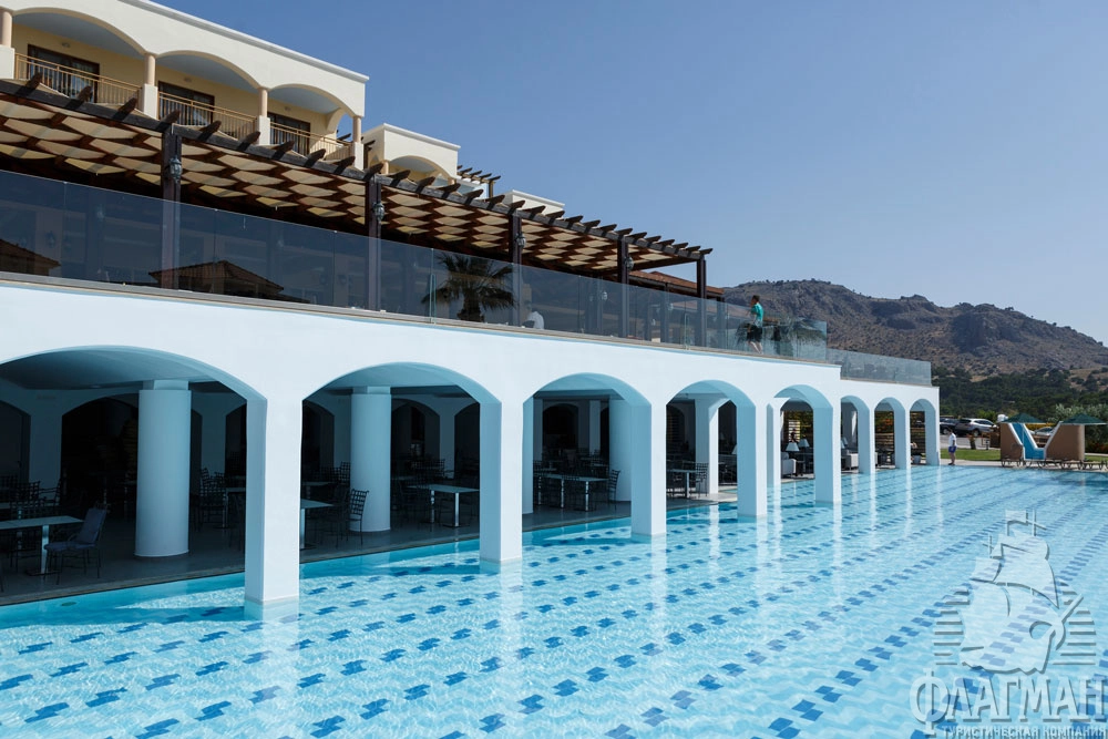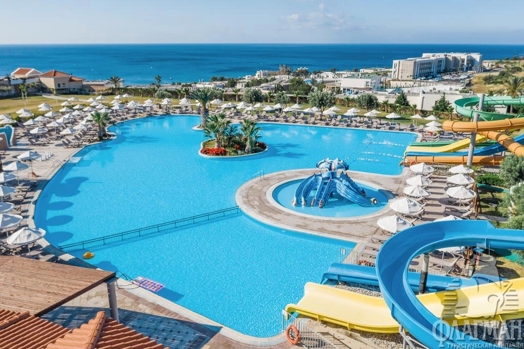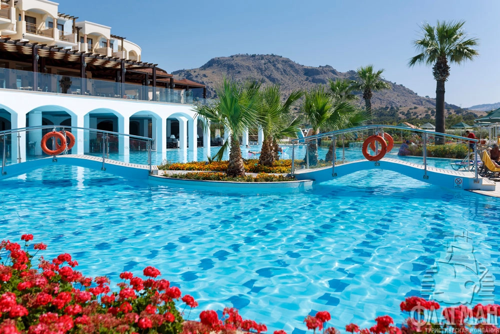 Линдос Империал Резорт и Спа 5* отель с большой зеленой территорией с красивым видом на море. К услугам гостей три ресторана a la carte, пять баров, крытый бассейн с пресной водой в SPA-центре, 3 открытых бассейна с пресной водой, 1 бассейн — с 6 водными горками, детские бассейны, детская площадка, спа-центр, ночной клуб, тренажерный зал,теннисный корт, магазин сувениров, мини-маркет, конференц-залы, обмен валюты, ювелирный магазин, Интернет-кафе, прачечная, химчистка, парковка. Рекомендуем для активного семейного отдыха.
