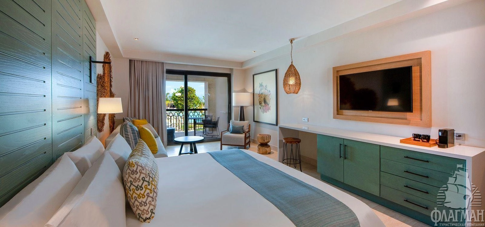 - Unique Junior Suite Swim Up (43 м2 + терраса 12 м2, мин. 1 макс. 4 чел.) номера с прямым выходом к бассейну, кровать King Size, диван, ванная комната с душем.