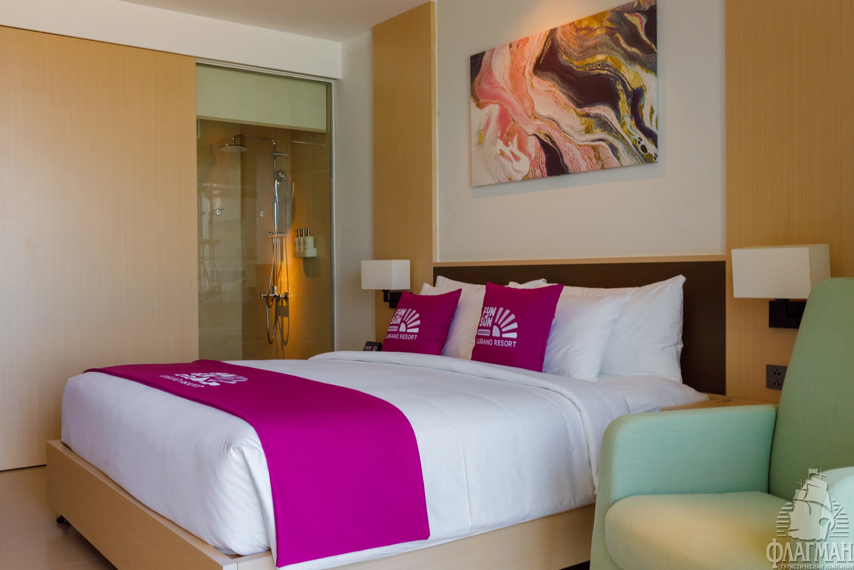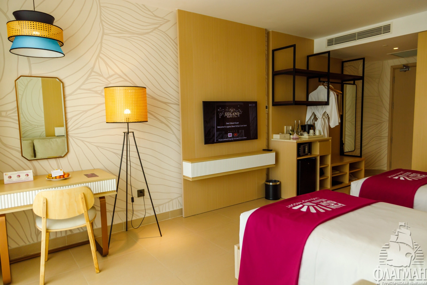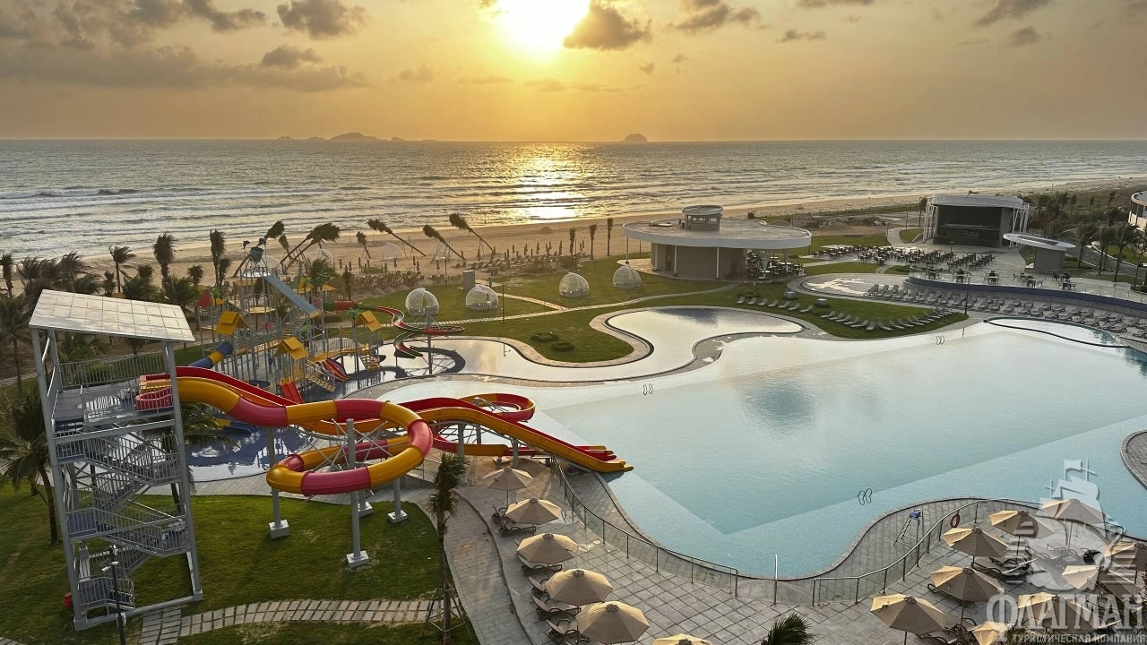 Лугано Резорт Камрень 5* – новый отель 2026 г. открытия находится на берегу моря, всего в 2 км от аэропорта и в 30 км от Нячанга в комплексе The Arena. На территории находятся 2 корпуса: корпус A, 1 линия – FUN&SUN SENSES Lugano Resort (питание «Ультра Все Включено», UAI) и корпус B, 2 линия Lugano Resort & SPA (питание «Все включено», AI). Гости, отдыхающие по концепции FUN&SUN SENSES на 1 линии, будут также иметь неограниченный доступ к локациям второго корпуса. На территории открытые бассейны для взрослых и детей, аквапарк, рестораны и бары, SPA центр с парной, сауной и процедурными кабинетами, тренажёрный зал, бильярдная, детский клуб. Есть ночной клуб, конференц-зал на 110 чел. У гостиницы песчаный пляж с зонтиками и шезлонгами протяжённостью 250 м, и за доп. плату можно арендовать павильоны. Команда аниматоров ежедневно организует занятия водной гимнастикой, турниры по пляжному волейболу и вечерние шоу. 2 раза в день организуется трансфер в ТЦ Нячанга. Рекомендуем отель для активного отдыха семей с детьми привыкшими к турецкому "всё включено".