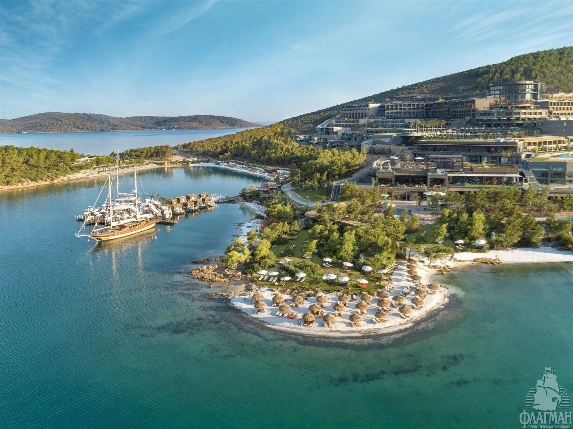 Расположен в 15 км от аэропорта Миласа Бодрума, в 200 км от аэропорта Измира, в 183 км от аэропорта Даламана, в 20 км от центра Бодрума, в 4 км от поселка Гюверджинлик, на берегу моря.