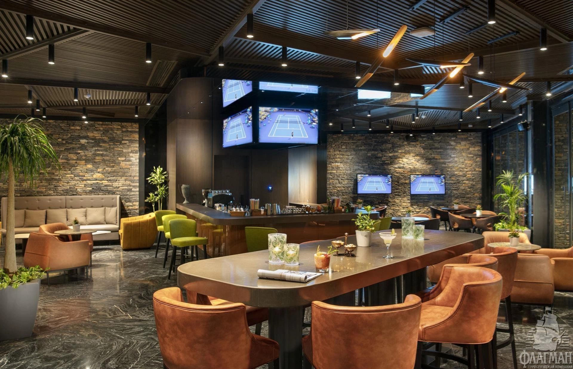 - бассейны: 4 (основной открытый бассейн с подогревом; бассейн Joy Beach Pool на пляже с морской водой, с подогревом; бассейн Indigo Beach Club Pool , с подогревом (Май –Октябрь); бассейн Fly-Inn Pool с подогревом)