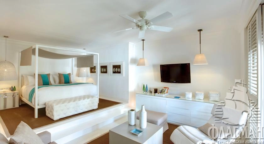 - 2 Beachfront Villa (180 м², макс. 2+1 реб (3-11 лет) или 2+1 infant (0-3 лет)). Расположены в максимальной близости от пляжа. Спальня с кроватью king-size, гардеробная, гостиная и обеденная зона, небольшая кухня, ванная комната с ванной и душем, душ на открытом воздухе. Патио с частным подогреваемым бассейном, меблированная беседка. Услуги персонального батлера (24 часа).
