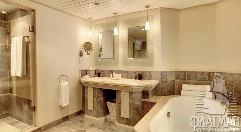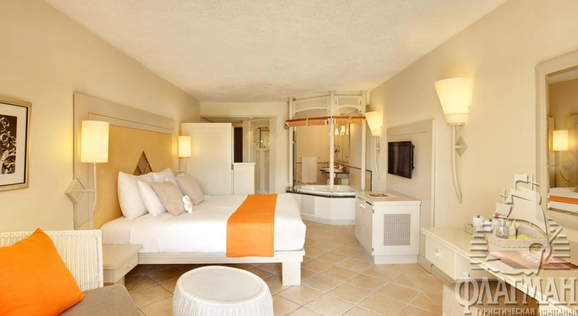 - 23 Junior Suite (70 м², макс. 2+1 (либо подросток 12-16 лет, либо реб. 3-11 лет, либо nfant 0-3 года). Спальня с кроватью king-size, потолочный вентилятор, гардеробная, ванная комната с ванной с функцией гидромассажа и душем, балкон/терраса с зоной отдыха. Некоторые номера могут быть совмещены (interconnecting).
