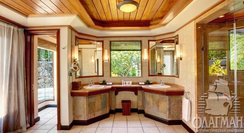 - 1 Emperor Villa (288 м², макс. 2+2 (подросток 12-16 лет или реб. 3-11 лет) или 2+ 1 infant (0-3 года)). Роскошная вилла с собственным участком пляжа. Спальня с кроватью king-size, детская спальня с двухъярусной кроватью, потолочный вентилятор, отдельная гостиная с обеденной зоной, кофе-машина, гардеробная, Hi-Fi стерео-система, две ванные комнаты, душ на открытом воздухе. Патио с частным бассейном, беседка на открытом воздухе с обеденной зоной, джакузи, площадка для барбекю. Услуги персонального батлера (24 часа).