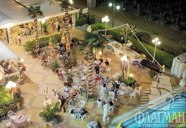 Расположен в начале курорта Лидо-ди-Езоло (со стороны маяка), около площади Piazza Nember, на берегу моря.