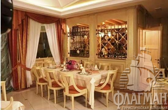 Питание: завтрак – разнообразный буфет; обед и ужин – выбор основных блюд по меню (из трех вариантов), овощной буфет. Напитки за обедом и ужином оплачиваются дополнительно (для FB минеральная вода за обедом – бесплатно).