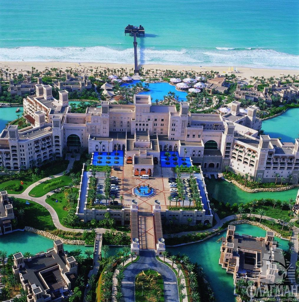 Отель MADINAT JUMEIRAH AL QASR 5* является центром комплекса Madinat Jumeirah. Это монументальное здание с огромными арками, внутренними садами и террасами. Отель окружен со всех сторон искусственным морским каналом протяженностью 3,5 км. Несколько подвесных мостов связывают его с пляжной территорией.