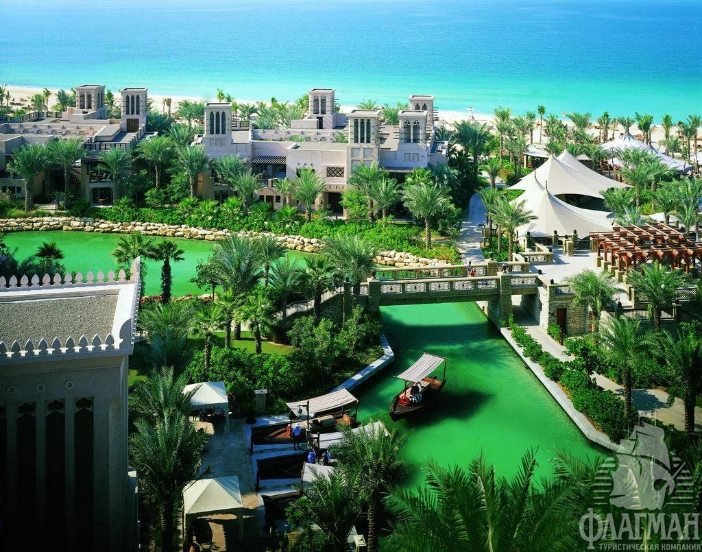 Отель расположен среди пышных садов и живописных каналов комплекса Madinat Jumeirah, в 25 км от международного аэропорта Дубая.
